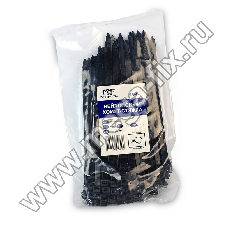 Хомут нейлоновый MGF 9,0х760 мм черного цвета (100 шт./ уп.)